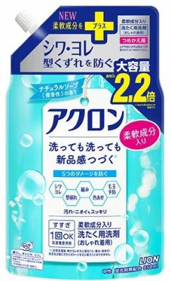 | LION Жидкое средство Akron для стирки деликатных тканей с легким ароматом мыла м.у с крышкой 850мл |