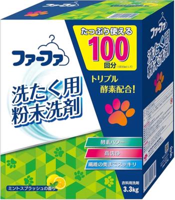 Nissan FaFa (Ниссан ФаФа/ Ns FaFa) Мощный супер концентрированный стиральный порошок от производителя Nissan Fa-Fa супер концентрированный стиральный порошок содержит формулу с тремя видами ферментов, глубоко проникает в волокна ткани, расщепляет въевшиеся загрязнения и выталкивает их на поверхность. Порошок в 3 раза эффективнее справляется с застарелыми загрязнениями, трудновыводимыми пищевыми пятнами, стойкими следами кожного жира на воротничках и манжетах, пятнами от крови и желтизной. Флуоресцентный усилитель белизны придаёт белью ослепительную чистоту. Подходит для стирки детской и взрослой одежды из хлопка, льна и синтетических тканей белого цвета, пастельных тонов и цветных тканей с устойчивыми красителями. Внимание! Не подходит для темных тканей. Допускается ручная и машинная стирка в стиральных машинах различных типов. Слабо-щелочная среда с пониженным пенообразованием. Нежный цветочный аромат. Состав ПАВ (14% полиоксиэтиленалкиловый эфир), щелочные реагенты (карбонат, гидроксид алюмината), смягчитель воды, ферменты, отбеливатель. Объем: 3.3кг Производитель: Ns Fafa Co., Ltd. Japan
